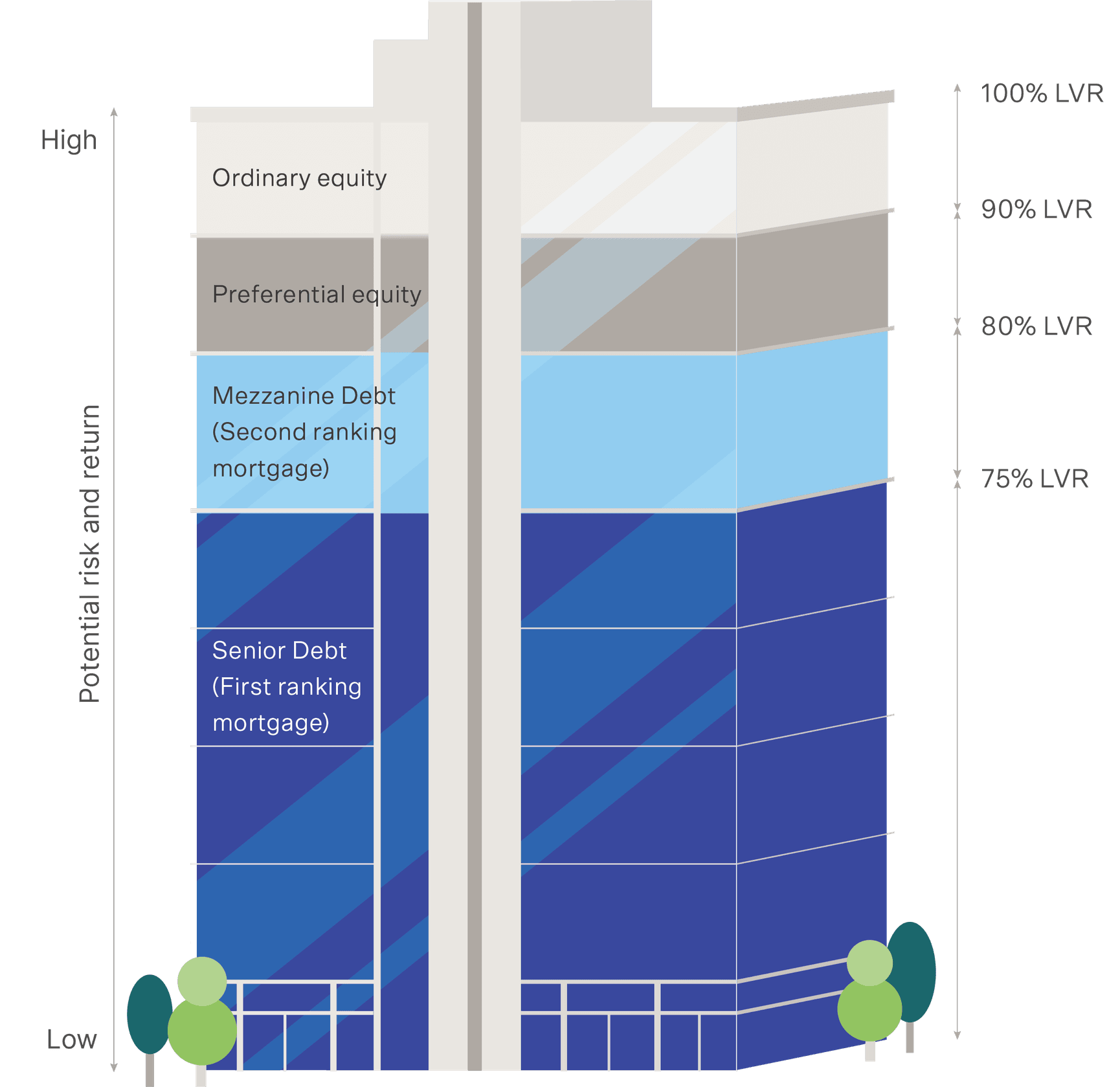 Ordinary equity sponsors manage or control the asset/entity in what is known as the ‘first-loss’ position. An income return, or dividend, is not guaranteed and if the saleable value of the asset decreases, equity funds are the first to be reduced or lost.